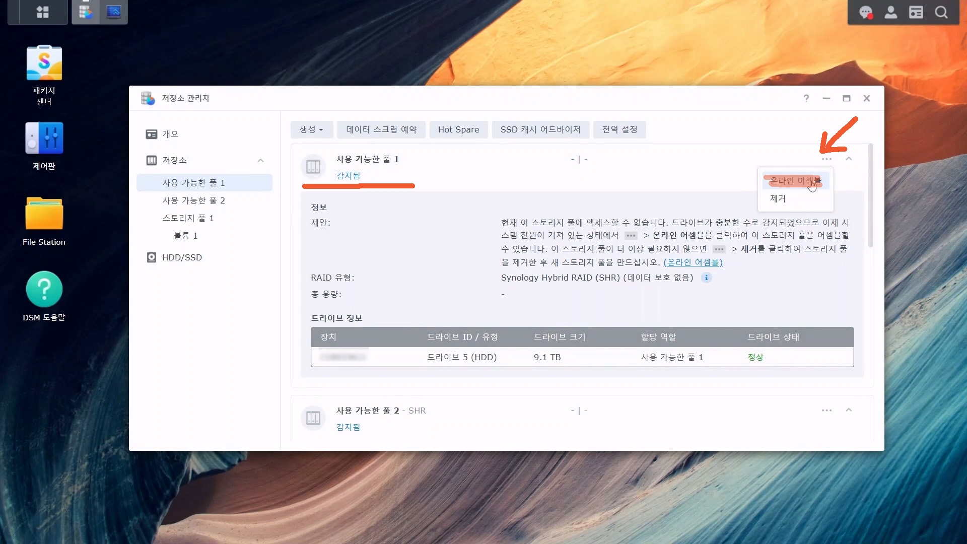 - Synology | 지식 센터 | 스토리지 풀 어셈블