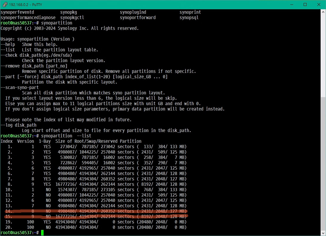 root@NAS:~# synopartition --list