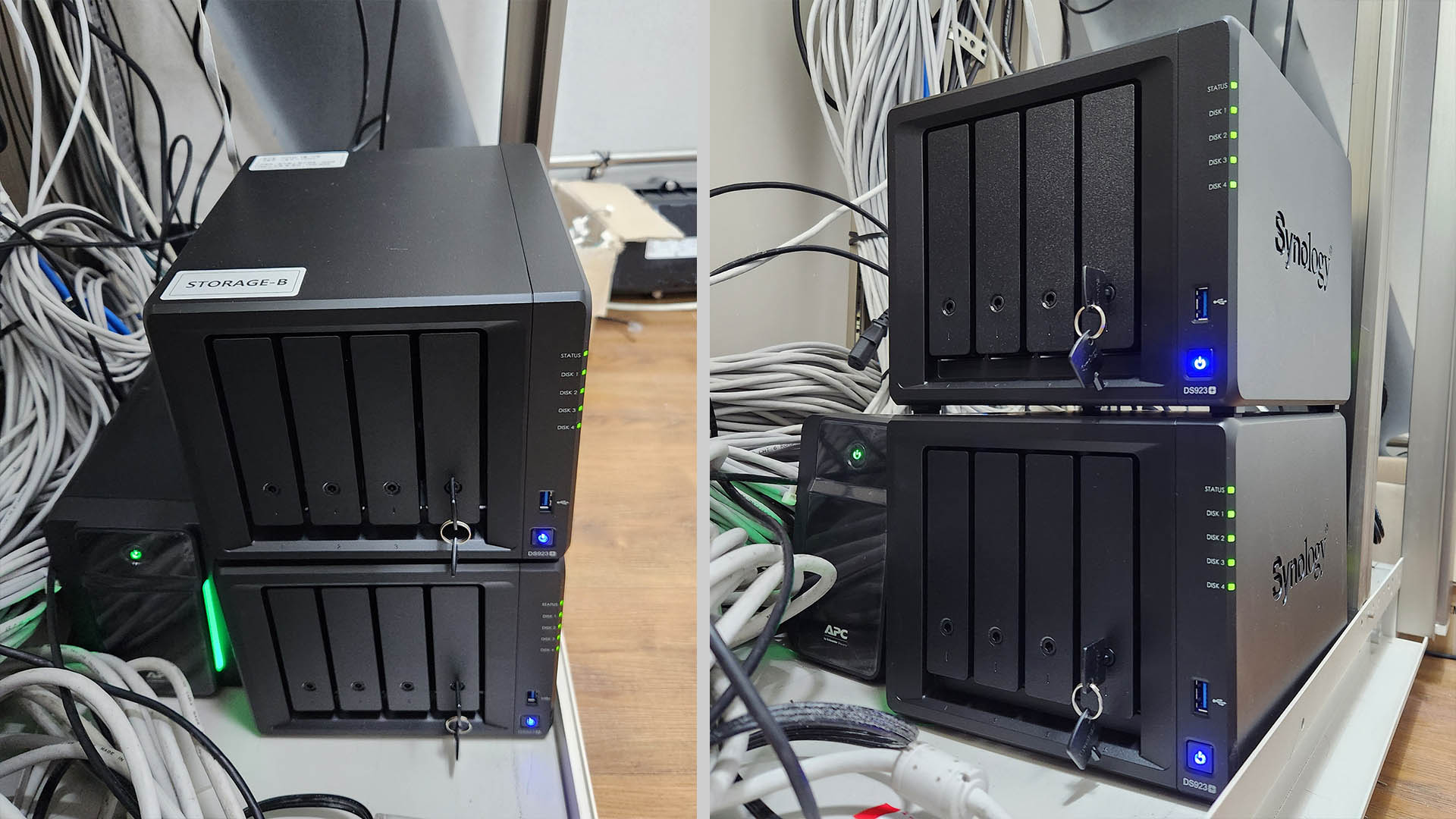 이중화를 사용하려면 동일한 모델의 나스가 두 대가 필요합니다. 두 대의 나스는 하드웨어와 소프트웨어가 같아야 합니다. 나스에 장착한 디스크의 위치와 개수가 같아야 하고, LAN포트의 개수도 같아야 합니다. 또한 DSM 버전과 Synology High Availability 패키지의 버전도 같아야 합니다. 두 대의 나스를 동시에 구매해서 처음부터 이중화를 구성하면 이런 조건이 전혀 문제가 되지 않는데요. 한 대만 사용해 오다가 이중화를 구성할 때는 이런 조건을 만족하는지 잘 확인해야 합니다.