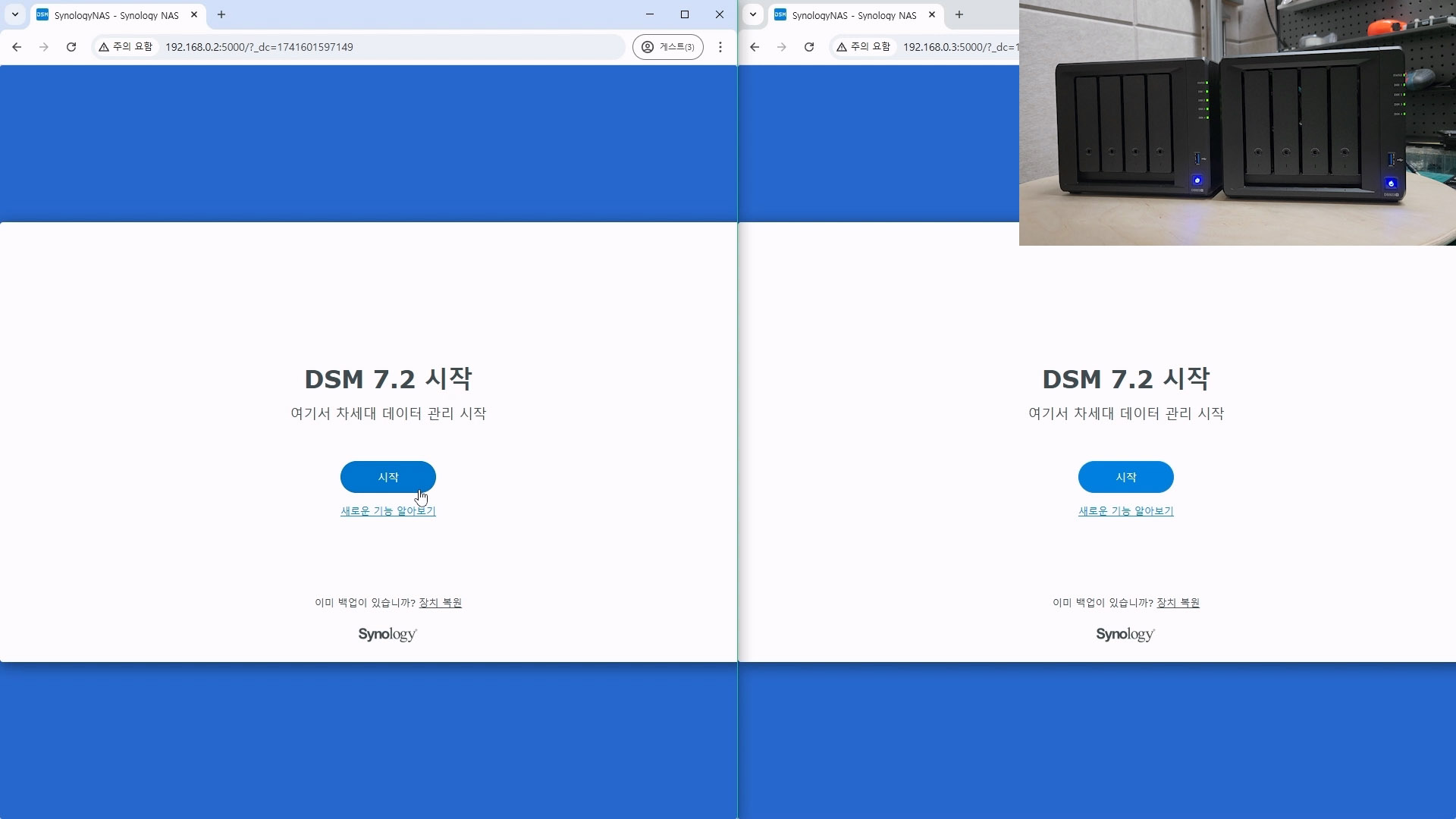 나스 두 대 모두 DSM(운영체제)을 설치합니다. DSM 버전은 동일해야 합니다.