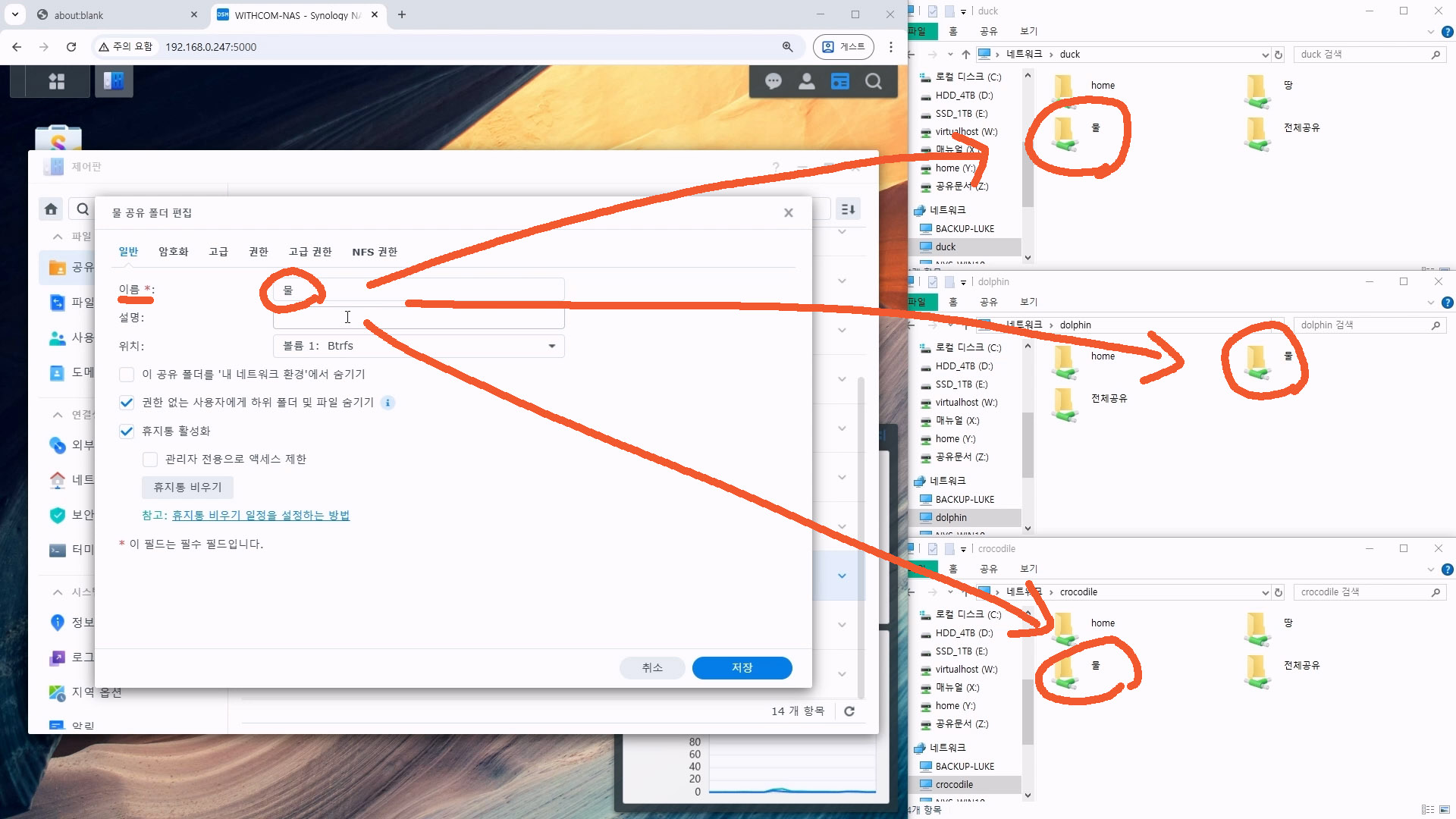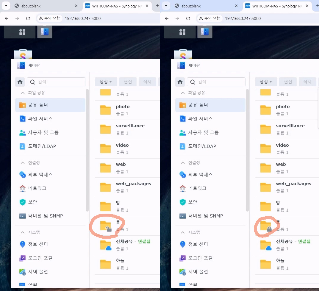 시놀로지 나스의 공유 폴더에 대해서 알아보겠습니다.