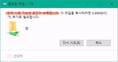 - 볼륨에 빈 공간이 남았는데도 사용 가능한 공간이 부족하다면서 파일 복사가 중단되는 경우에는 할당량을 모두 사용했는지 확인해 보시기 바랍니다.